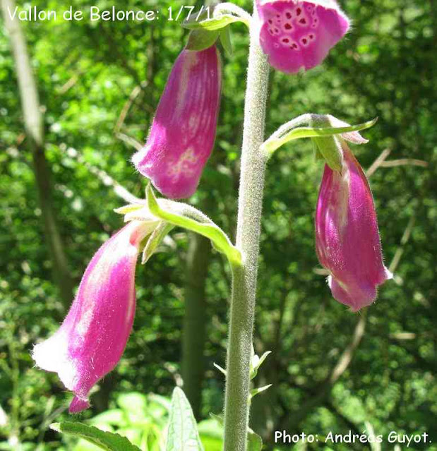 Digitalis purpurea. Elles sont sur la droite à la fin de la piste forestière,